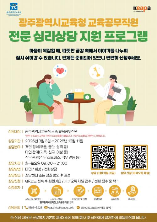 »ó´ãÀ» ¹Þ°í ½ÍÀº ±³À°°ø¹«Á÷Àº ´ë¸é, ÀüÈ, À̸ÞÀÏ µîÀ¸·Î ½ÅûÇÏ¸é µÈ´Ù. »ó´ãÀº »ó´ã»ç¿Í ÇùÀÇÇØ ÃÑ 4ȸ(ȸ´ç 50ºÐ À̳»)±îÁö ¹ÞÀ» ¼ö ÀÖ´Ù.